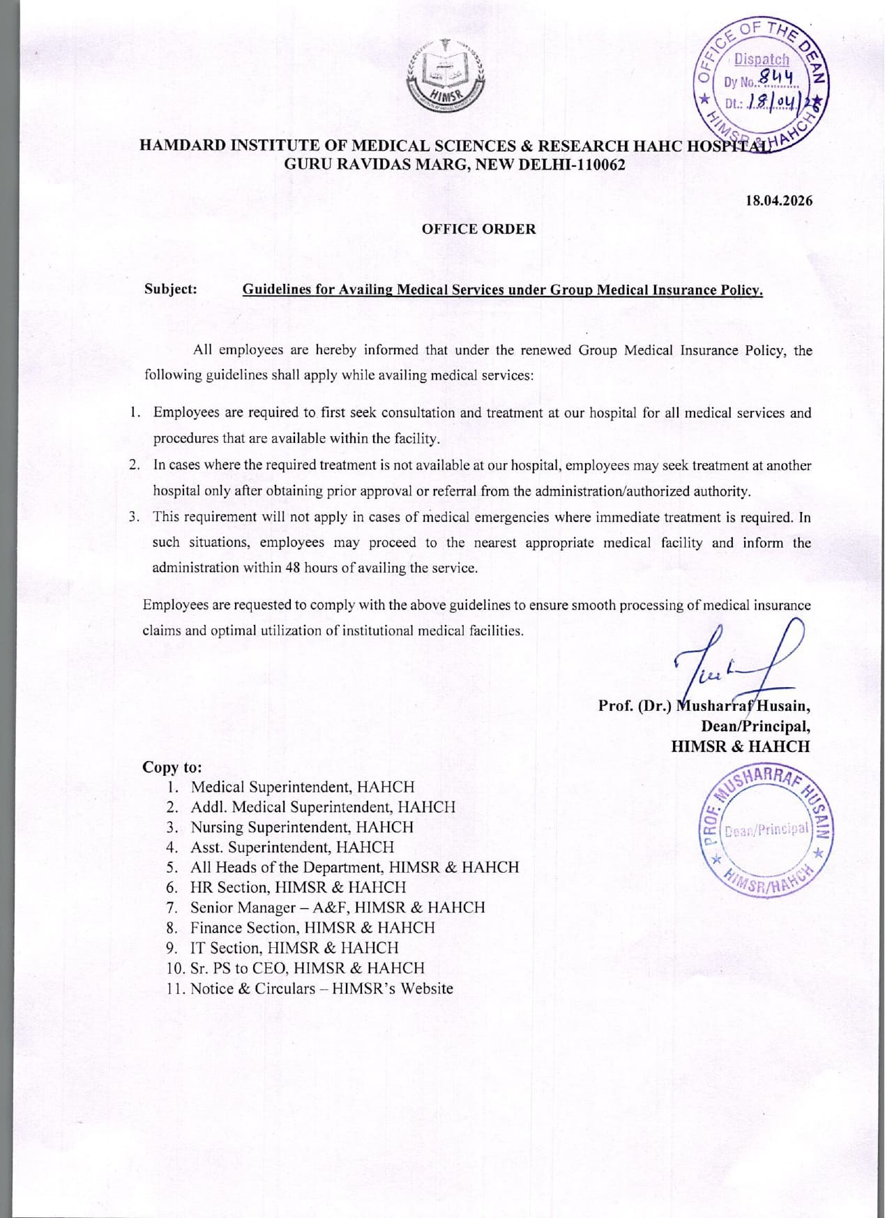 Guidelines Availing Medical Services under Group Medical Insurance Policy, Home » Notice & Circulars » Guidelines Availing Medical Services under Group Medical Insurance Policy, Published on 18/04/2026