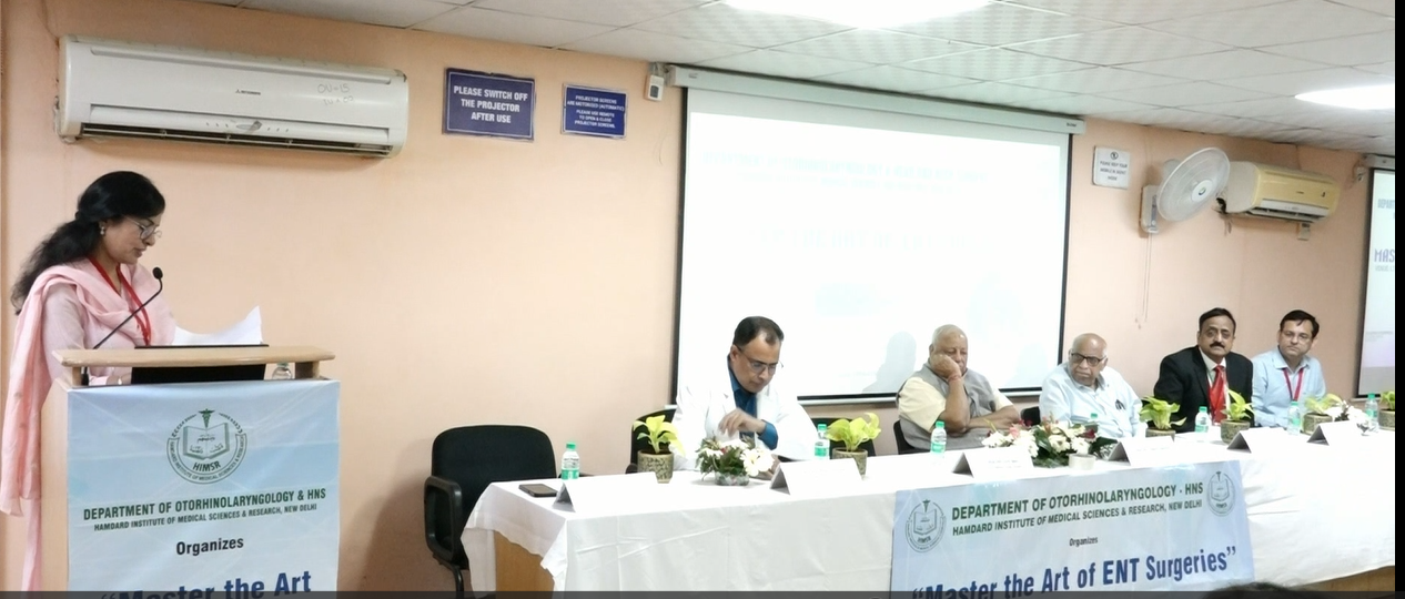 The Dept. of ENT-HNS Organized a CME on 6th Sept. 2025 titled “Master the art of ENT Surgeries”. In this CME distinguished speakers delivered lectures on pertinent Topics. The event was well attended by delegates and Post Graduates from AIIMS New Delhi, MAMC, UCMS, LHMC, Apollo , Sharda Medical college, and Santosh Medical college. Key note address was taken by Dr. Alok thakar ,HOD AIIMS. The event was blessed by our respected Dean – Dr. Musharraf Husain Dr. Arun Kumar Agarwal, Professor of Excellence-ENT, was the chief guest .and Dr. Sudhir Bahadur Professor of ENT was Guest of Honour .